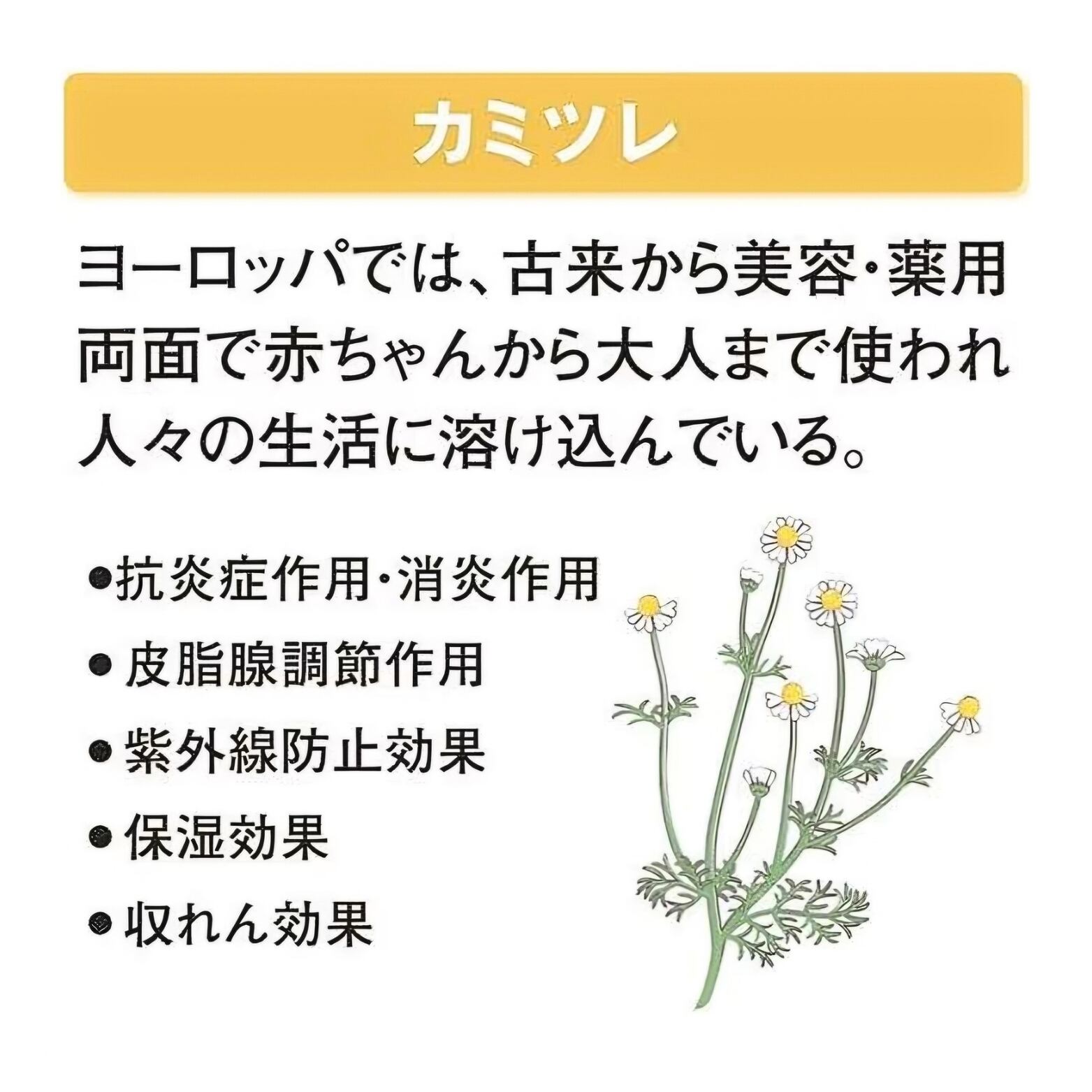 カミツレ花エキス、ローズマリーエキス、