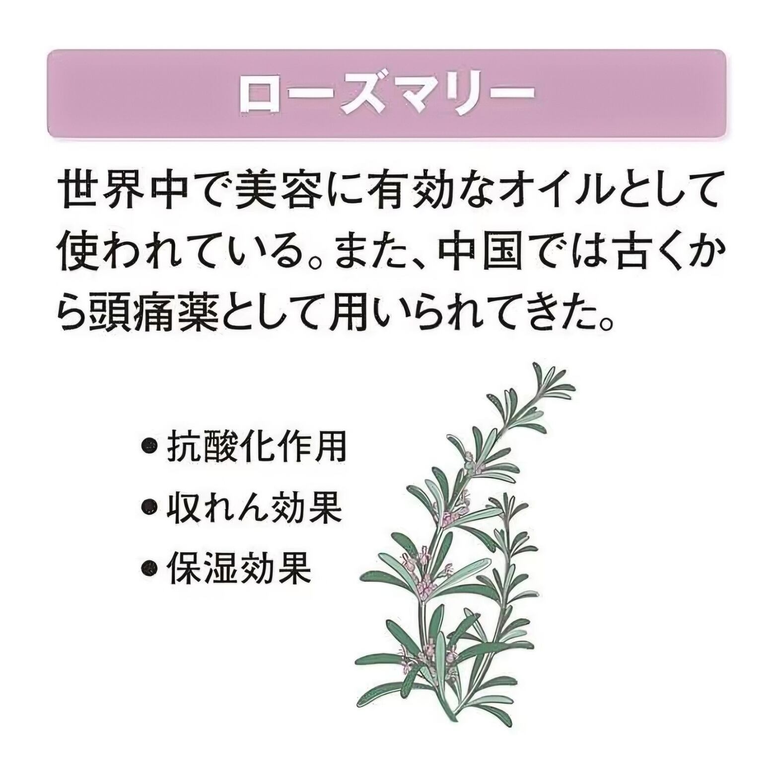 カミツレ花エキス、ローズマリーエキス、