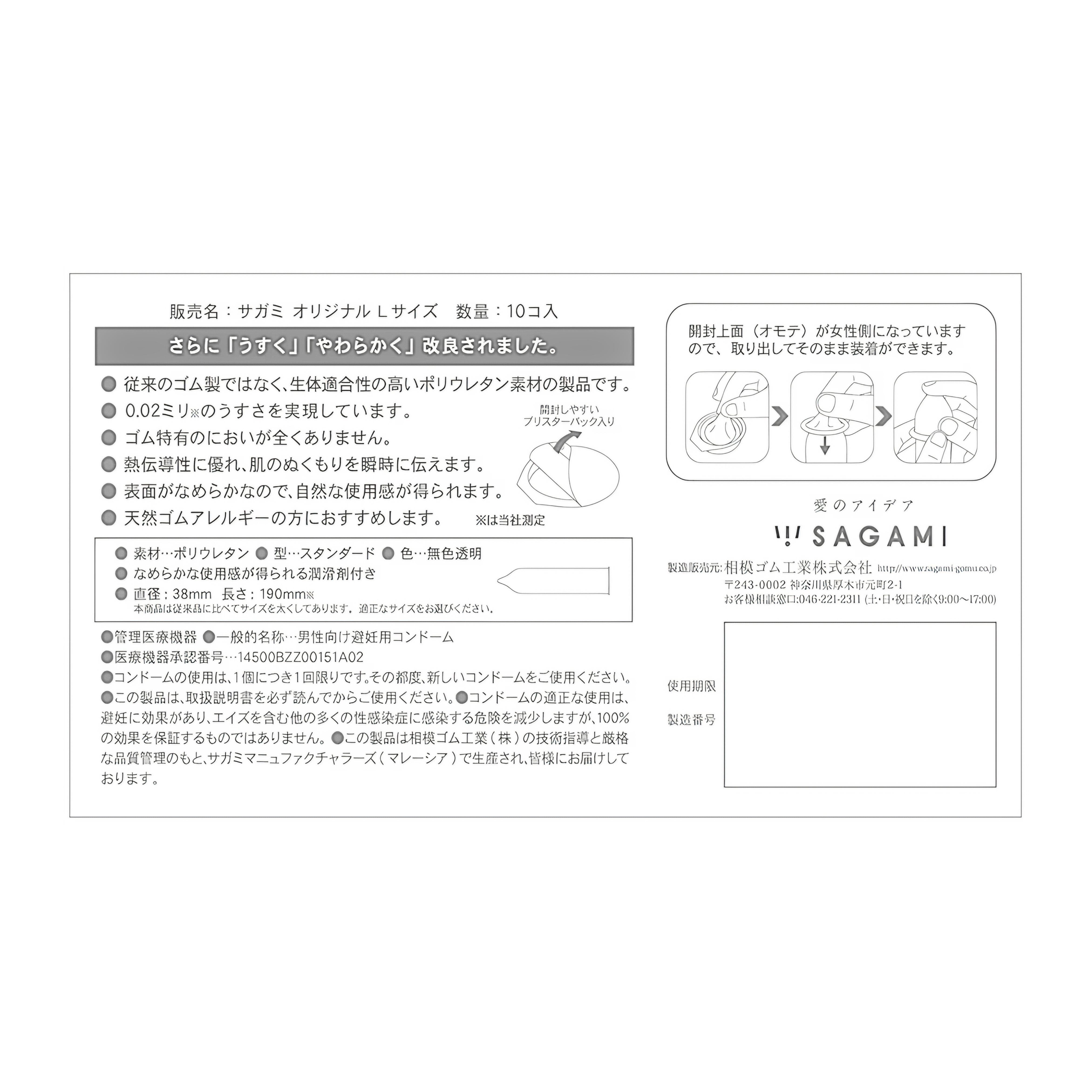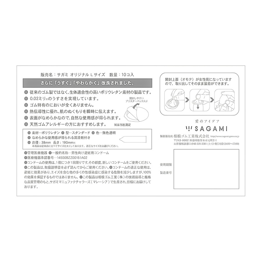 サガミオリジナル 002 Lサイズ コンドーム 10個入